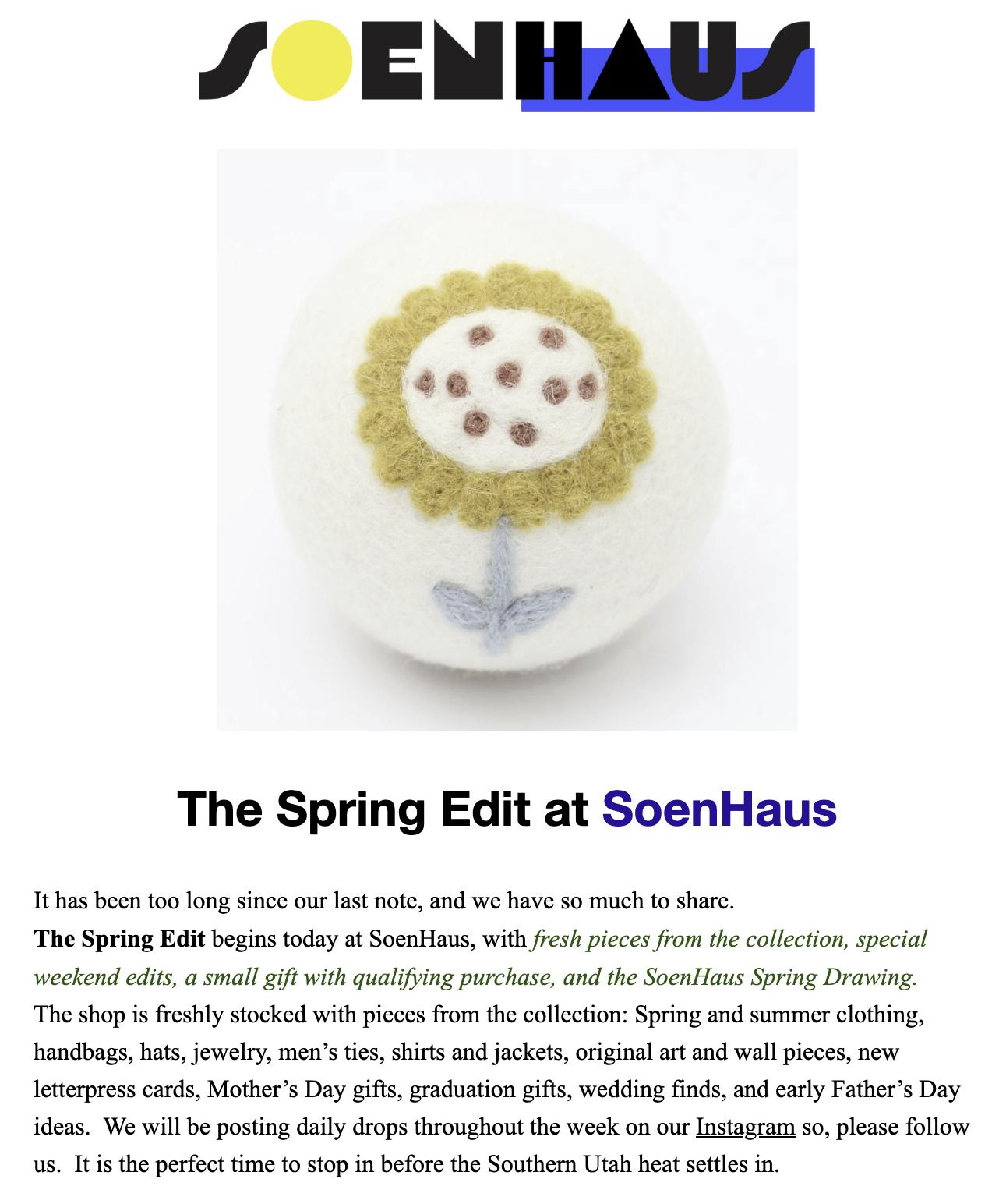 Spring Edit Our Spring Edit is here! April 30 - May 30. Click on the link below See Promotion See Promotion
